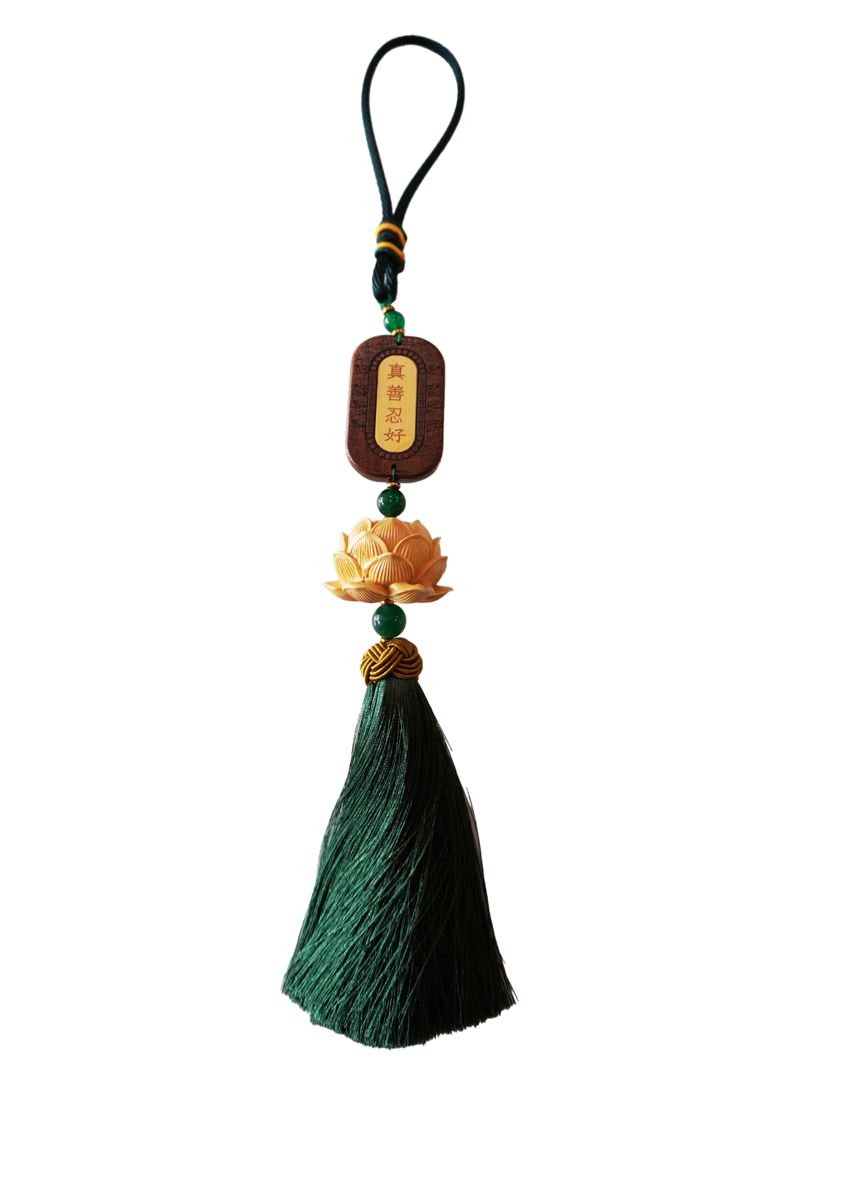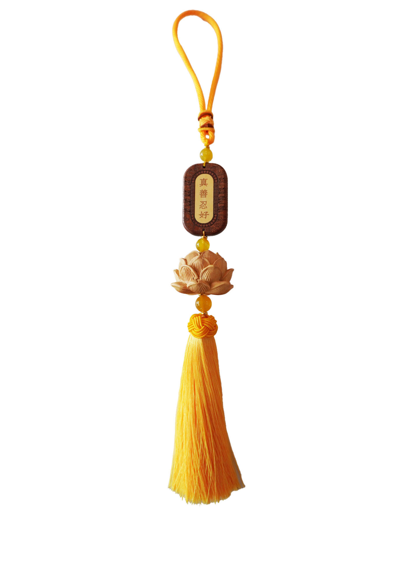 Add a touch of natural beauty to your home with our elegant Wooden Lotus Flower. Crafted from boxwood, each petal is carefully carved with precision. The delicate tassels made from soft rayon and genuine agate beads add a touch of luxury to this stunning piece.